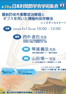 | テーマ | 最新の体外衝撃波治療器とギプスを用いた積極的保存療法 |