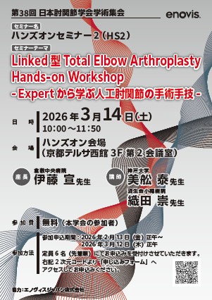 | テーマ | Linked型 Total Elbow Arthroplasty Hands-on Workshop -Expertから学ぶ人工肘関節の手術手技- |