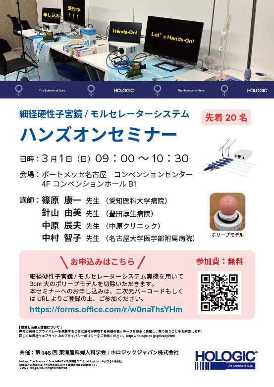 | テーマ | 細径硬性子宮鏡 / モルセレーターシステム ハンズオンセミナー |